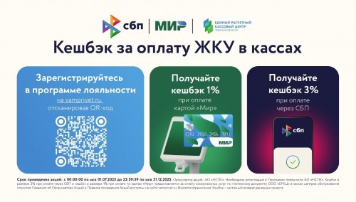 Единый расчетно-кассовый центр напоминает жителям г. Твери и Тверской области о возможностях акций «Кешбэк за оплату ЖКУ через СБП в ЕРКЦ города Твери и Тверской области» и «Кешбэк за оплату ЖКУ картой «Мир» в ЕРКЦ города Твери и Тверской области».
